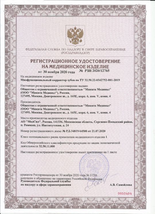 Регистрационное удостоверение на медицинское изделие (корректор)