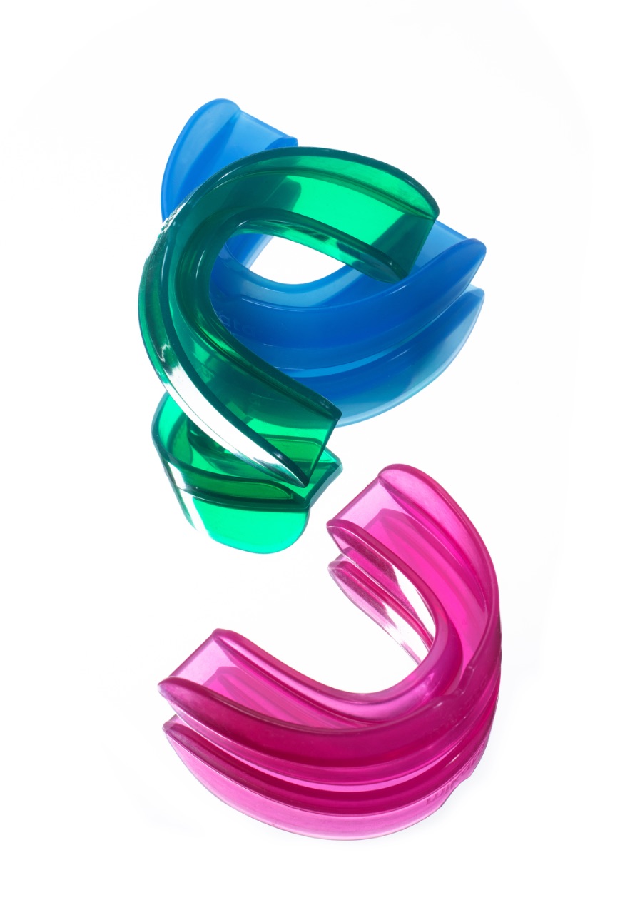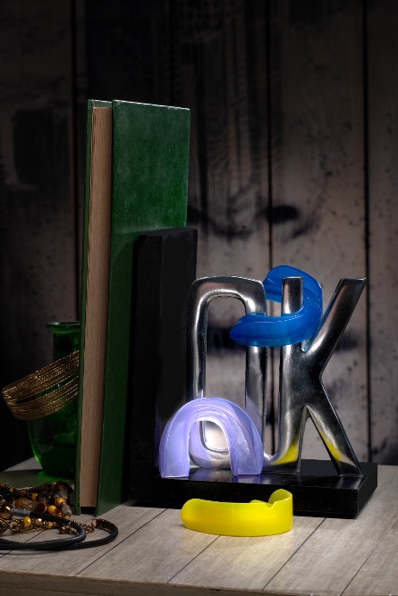 Корректор двухчелюстной. Не допускает смыкания зубных рядов и травмирования зубов во время спазма. Материал мягкий, но имеет высокое сопротивление на раздир (прокус). Обладает высокой степенью амортизации, минимизирует избыточную нагрузку на зубочелюстную систему при непроизвольном сокращении жевательных мышц ночью. Стандартная симметричная форма корректора не провоцирует закрепление имеющихся ортодонтических нарушений. Нормализация носового дыхания при лор патологии. Нормализация фонетики – Формируется правильное положение языка на нёбе, что влияет на фонетику при произношении звуков «Р», «Л», «Н», «Ч», «Т», «Д»
